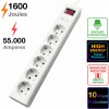 Πολύπριζο ασφαλείας με Πολλαπλή Προστασία Υπέρτασης 6 θέσεων, 1600 Joules, 55000 Amperes, διακόπτη επαναφοράς, και διπλό Έλεγχο με δύο φωτεινές Ενδείξεις για Προστασία και Γείωση.