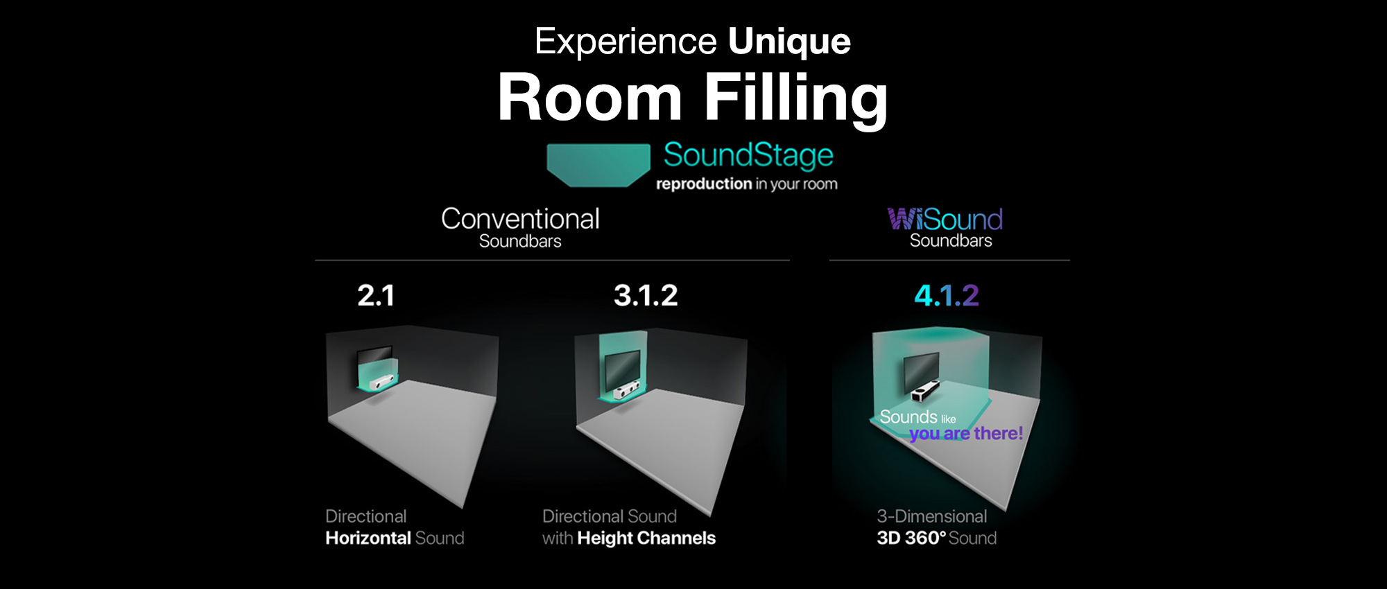 Superior acoustic experience than the common 3.1.2 soundbars with height channels
