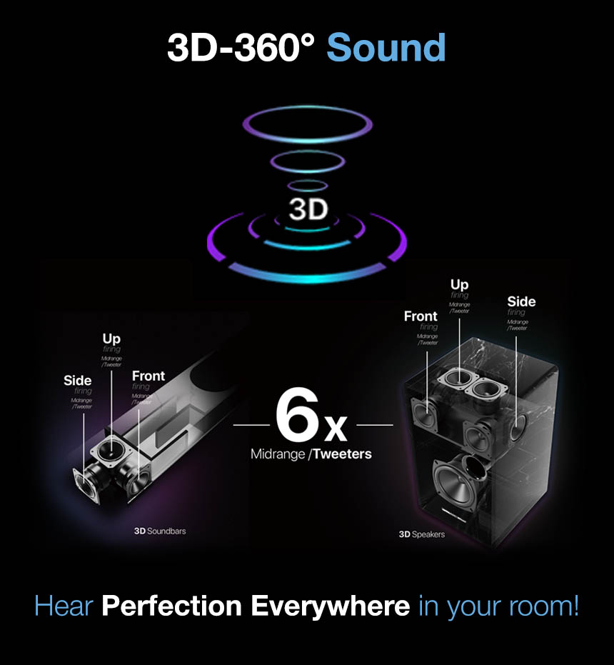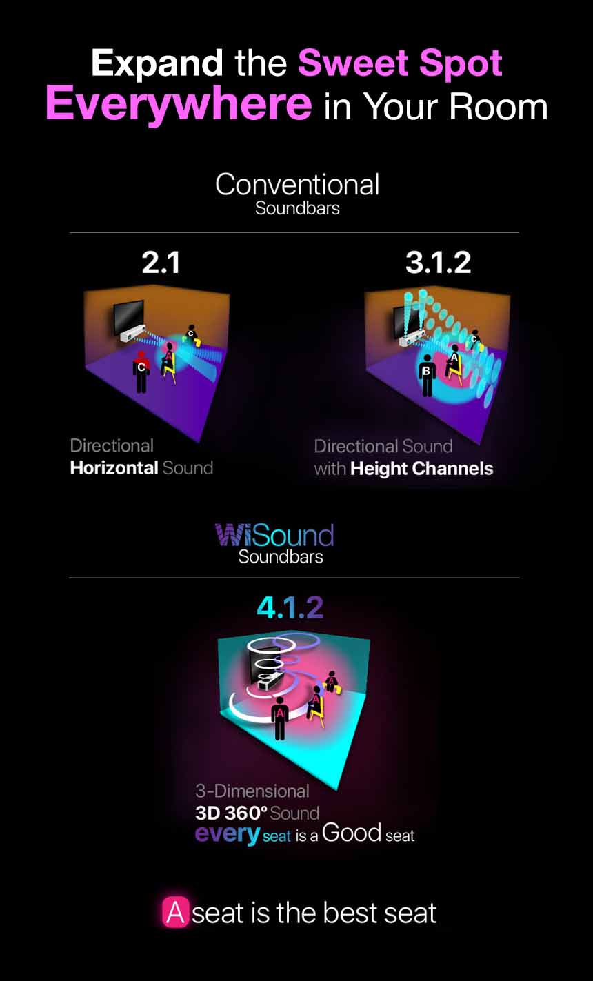 Superior acoustic experience than the common 3.1.2 soundbars with height channels