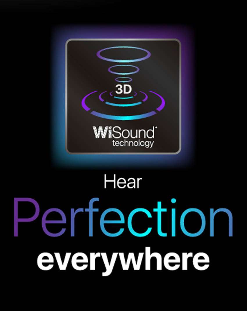 WiSound speaker’s unique design, with balanced drivers firing forward, sideways and upwards, fills any room with big, vivid, natural, finely-detailed sound and re-creates the music source at its full size and natural height.
