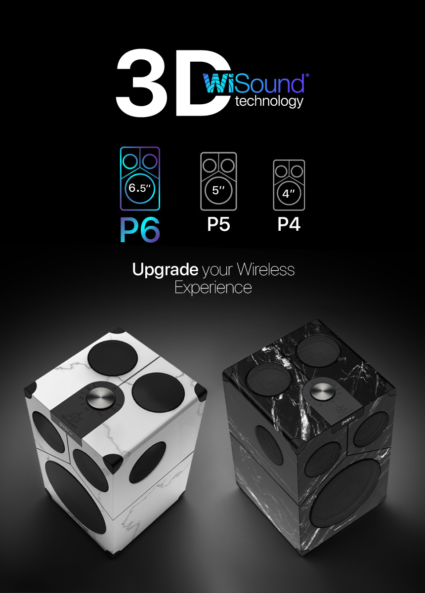 WiSound speaker’s unique design, with balanced drivers firing forward, sideways and upwards, fills any room with big, vivid, natural, finely-detailed sound and re-creates the music source at its full size and natural height.