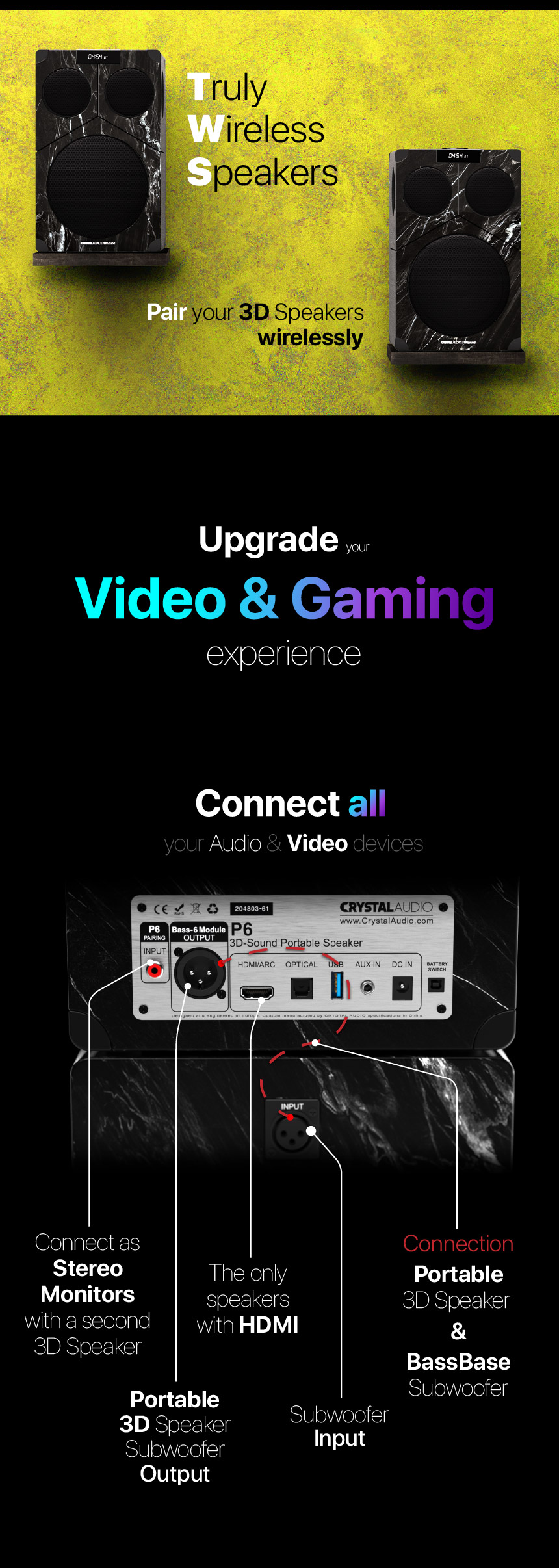 • Pairs Wirelessly with a second 3D-6 for the Most Advanced Stereo Performance you have ever Experienced