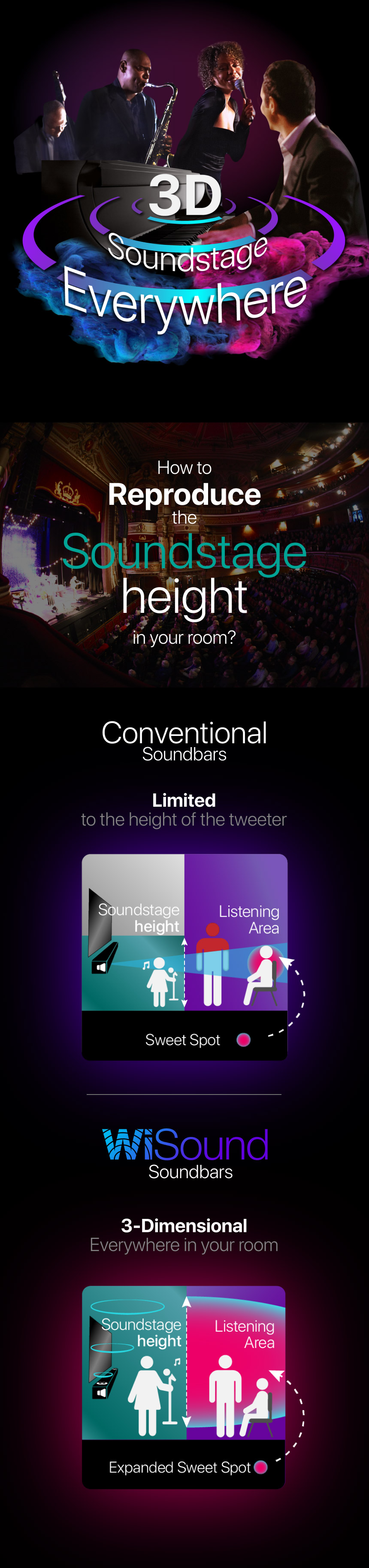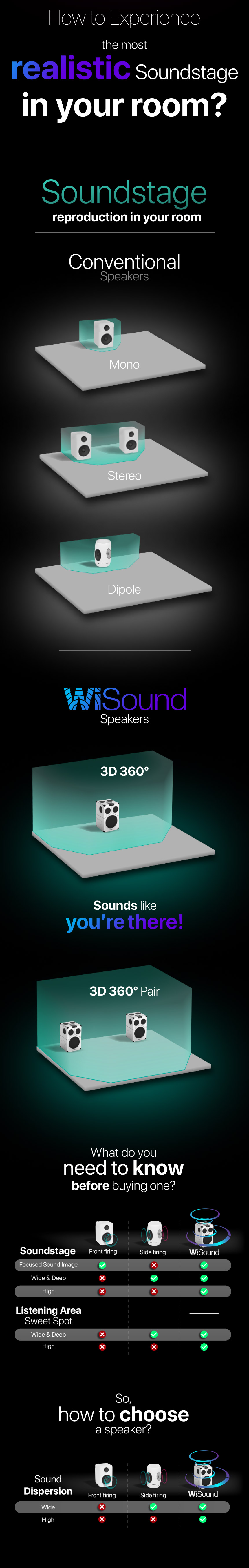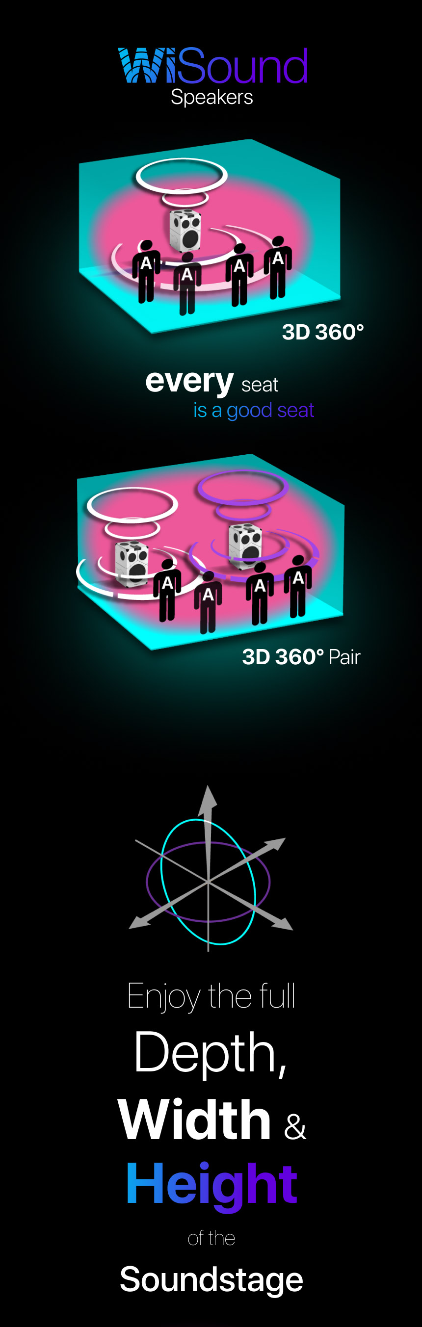 Sound reflections in a room give music much of its life and vibrancy. WiSound speakers use these reflections in all directions equally. WiSound results in a natural, vibrant, large-scale, exciting and dynamic sound everywhere in the room