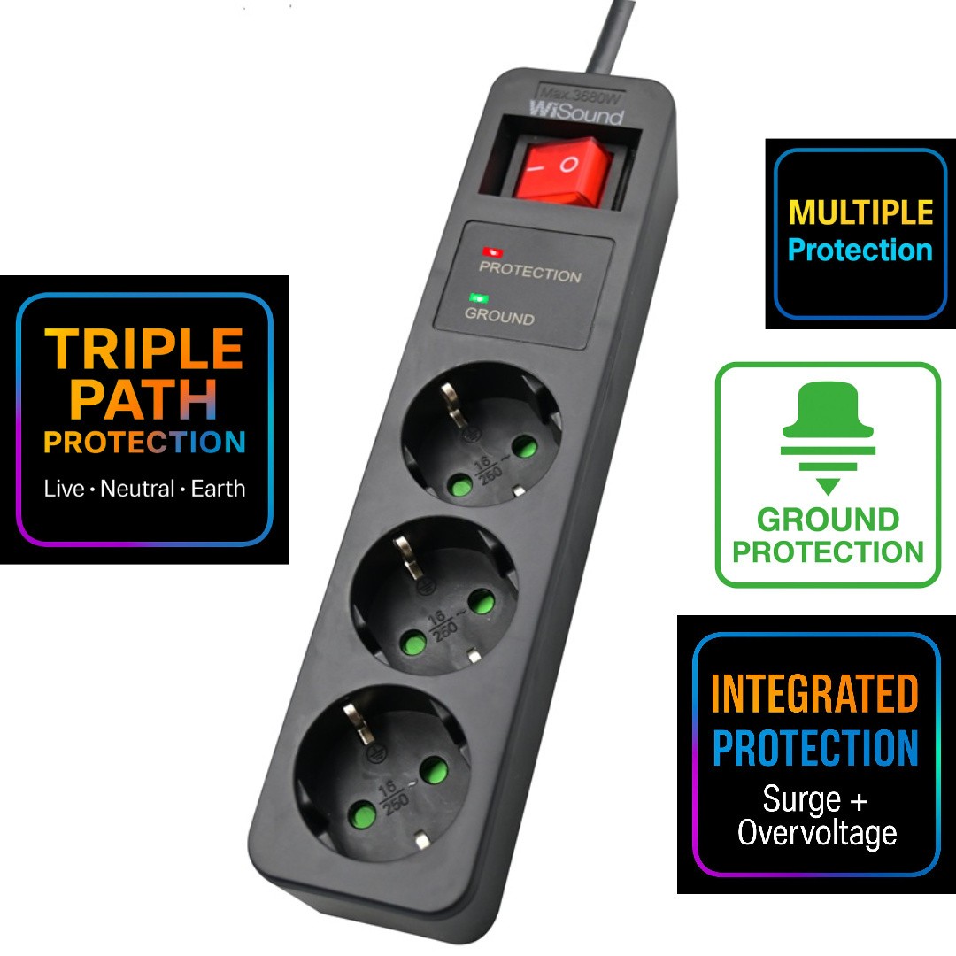 Many power boards claim surge protection but never state Joules or Amperes. These power boards protect only the Live wire with a single small MOV, leaving Neutral and Earth unprotected during real surge events. Triple-Path Protection safeguards all three electrical paths. Triple-Path Protection delivers stronger protection and more reliable real-world performance.paths.