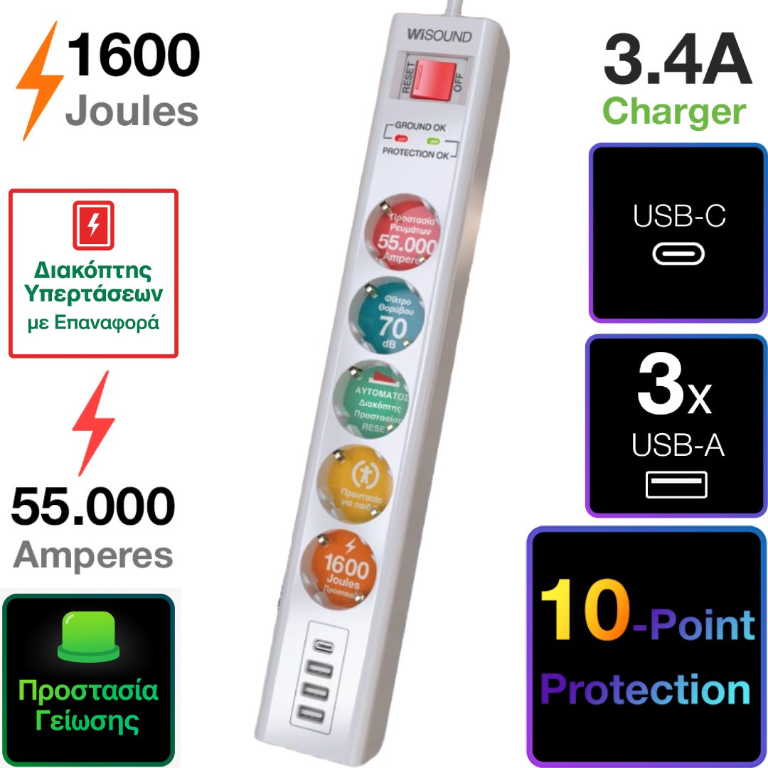 Joules indicate the total energy, from the beginning until the end of the spike. The high-Joule rating of the surge protector, ensures the safety of your AV gear or any other electronic device.
