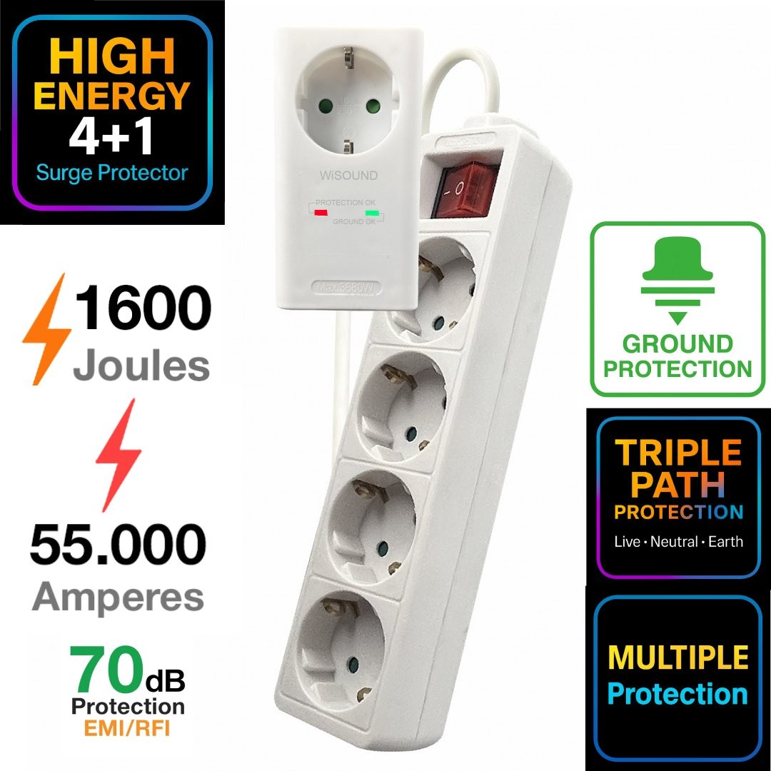 Yes it is about protection, but not only about that! The Crystal Audio surge protectors feature filters that drastically reduce the Electromagnetic and Radiofrequency Interference (EMI & RFI) by 50dB to 80dB. That results in much improved audio reproduction (without any noise, hum, clicks and pops) and a crispier, free of shadowing and artifacts image.