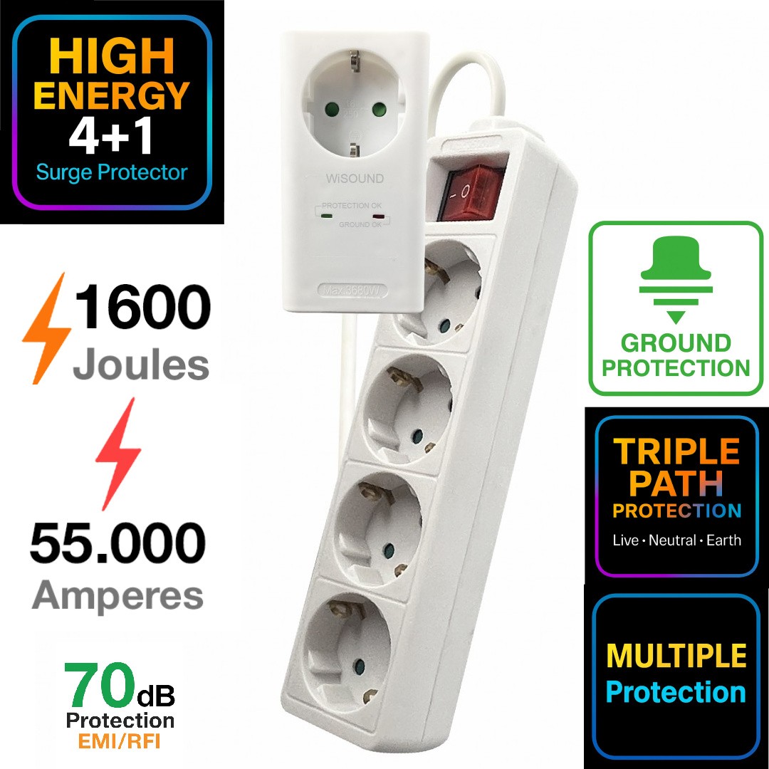 Yes it is about protection, but not only about that! The Crystal Audio surge protectors feature filters that drastically reduce the Electromagnetic and Radiofrequency Interference (EMI & RFI) by 50dB to 80dB. That results in much improved audio reproduction (without any noise, hum, clicks and pops) and a crispier, free of shadowing and artifacts image.