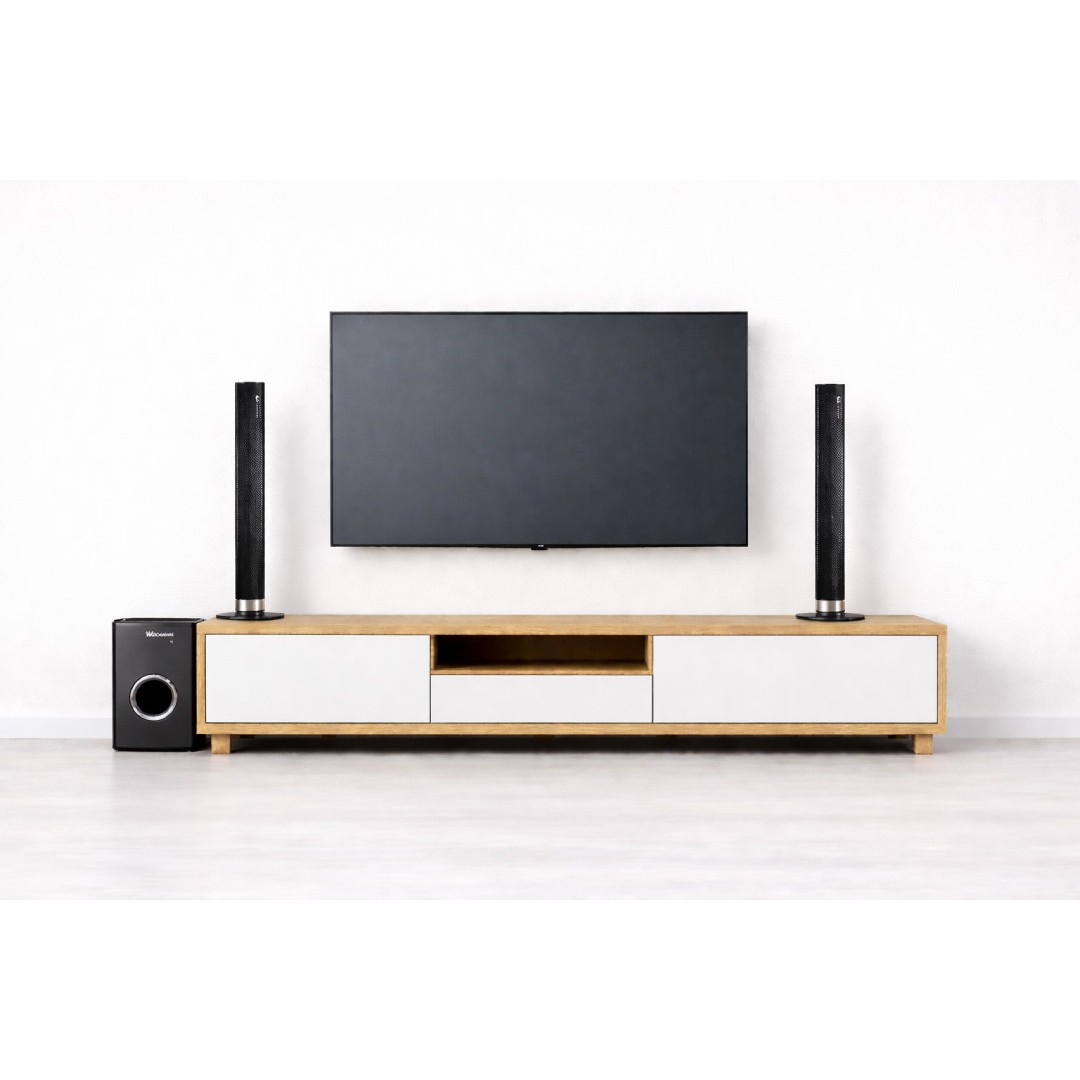 Together with the subwoofer, the multi-channel audio creates a rich, immersive experience for both music and TV entertainment.